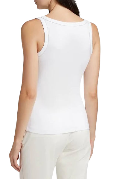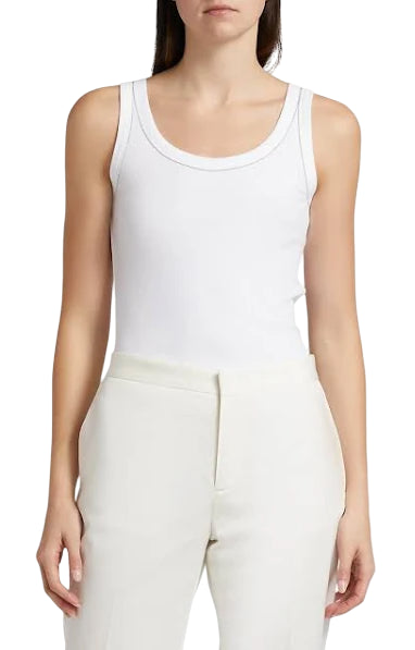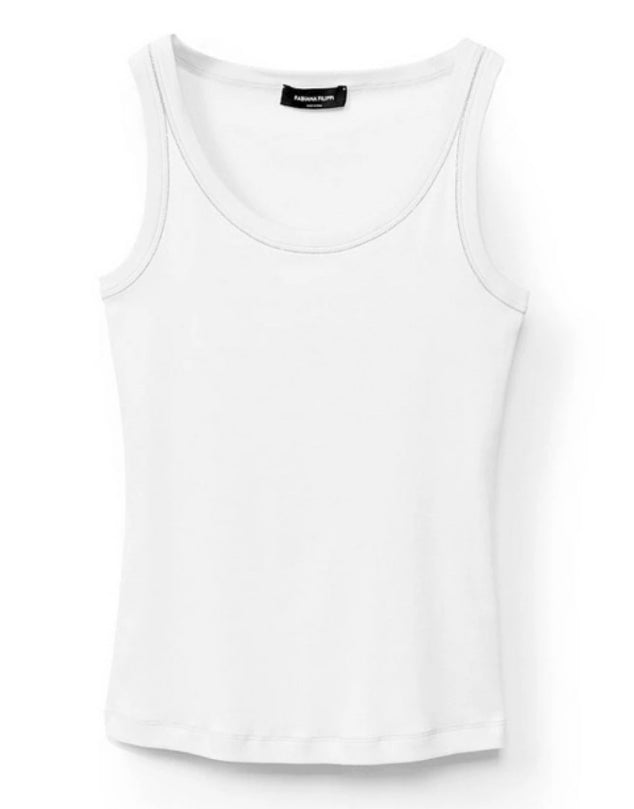Top senza manica in jersey di cotone con lavorazione a costina e bordi in lurex