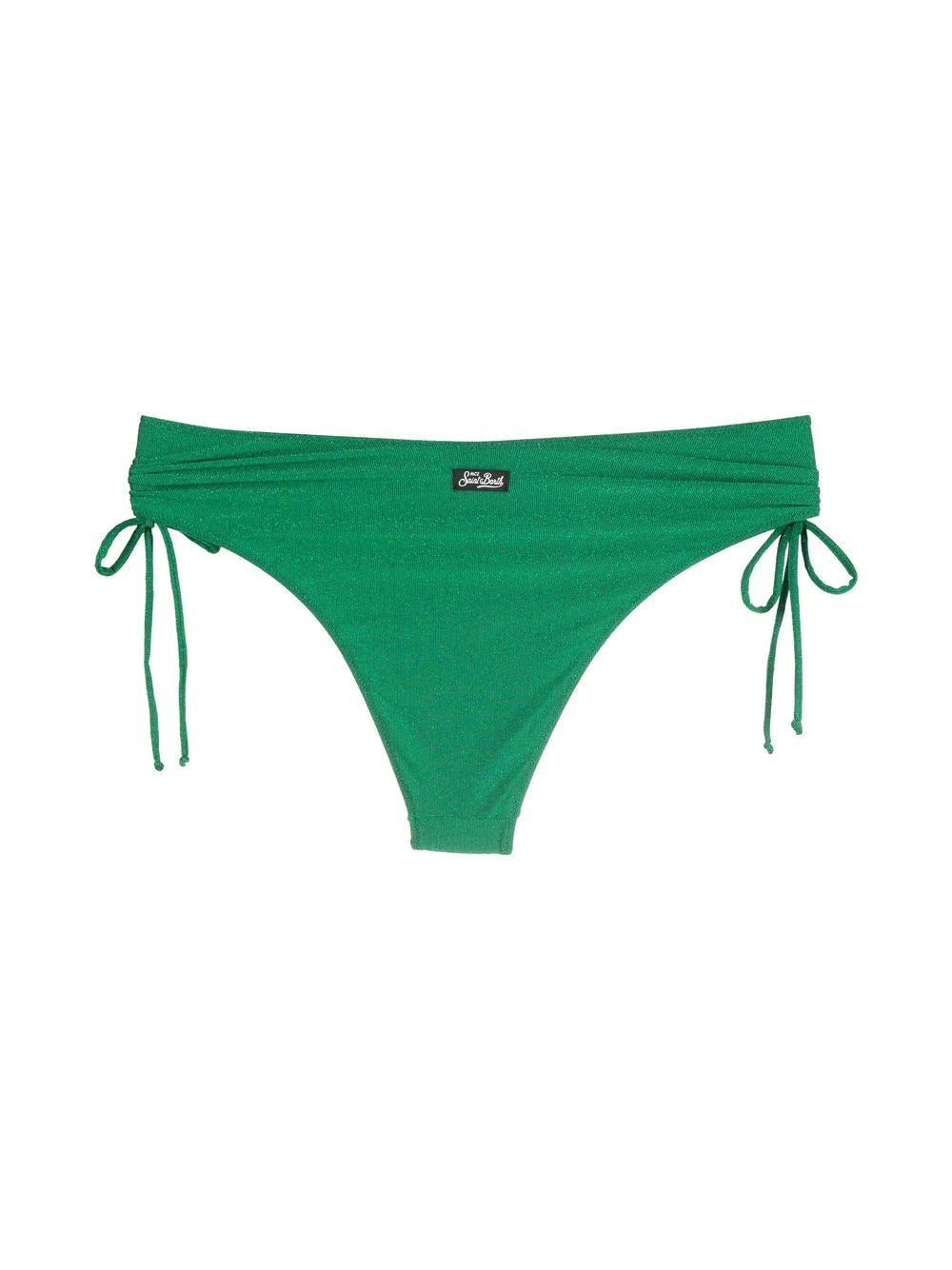 Una novità della collezione primavera estate 22 di Mc2 Saint Barth. Slip in lurex colore verde. Venduto separatamente anche il top dello stesso colore e tessuto acquistabile anche in taglia diversa. Istruzioni per la cura: lavare a mano a freddo. Non mettere in ammollo. Non stirare. Non asciugare a contatto con altri indumenti. Risciacquare dopo il contatto con il cloro o l'acqua salata.