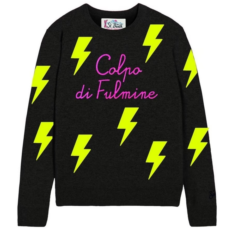 MC2 SAINT BARTH DONNA MAGLIA GIROCOLLO RICAMO COLPO DI FULMINE