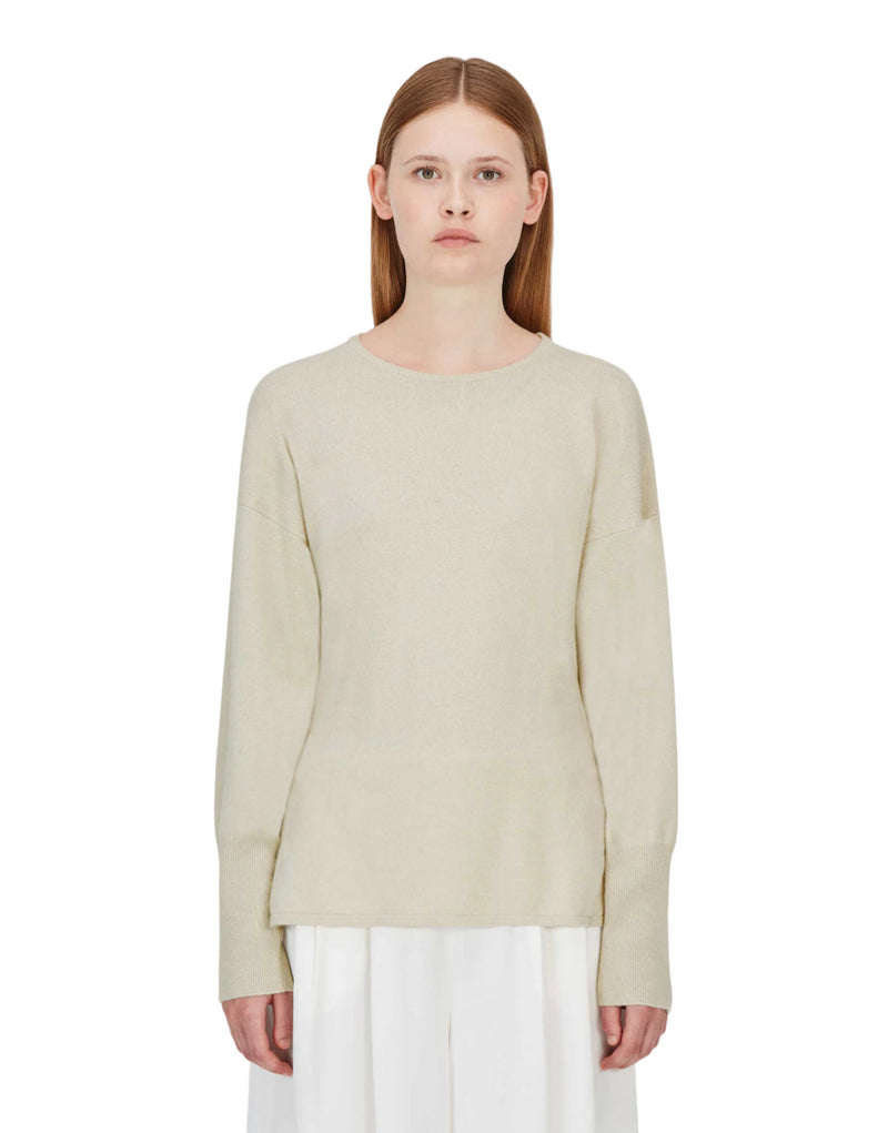 SUN68 DONNA PULLOVER ROUND NECK SOLID L/S BIANCO PANNA
