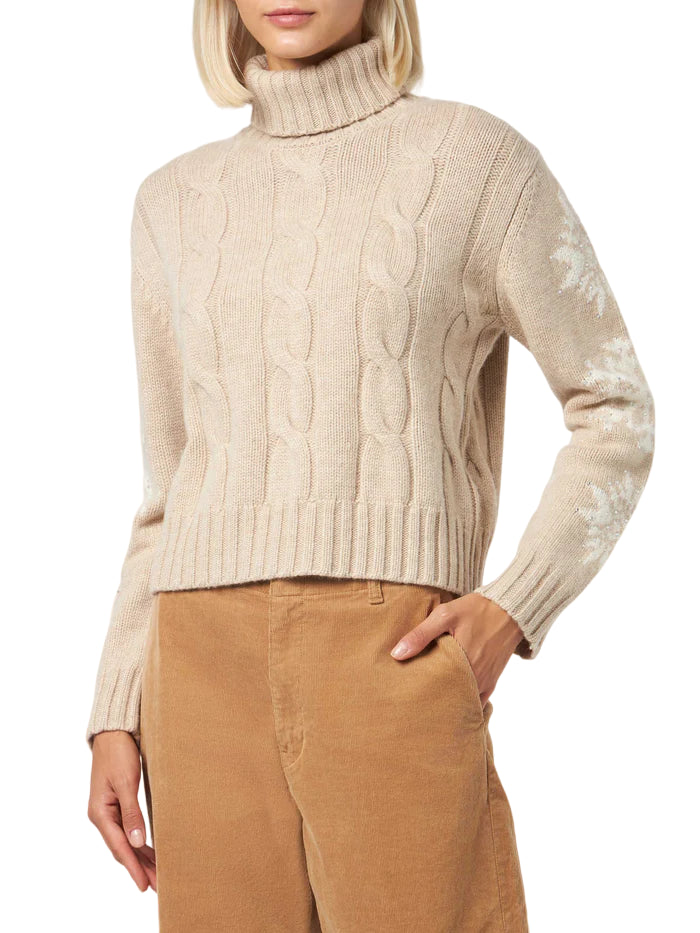 MC2 SAINT BARTH DONNA MAGLIA INTRECCIATA A COLLO ALTO CON STRASS FIOCCO DI NEVE BEIGE