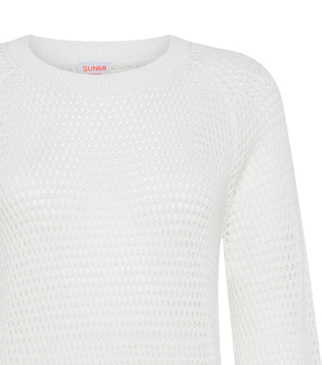 SUN68 DONNA MAGLIA ROUND JACQUARD BIANCO