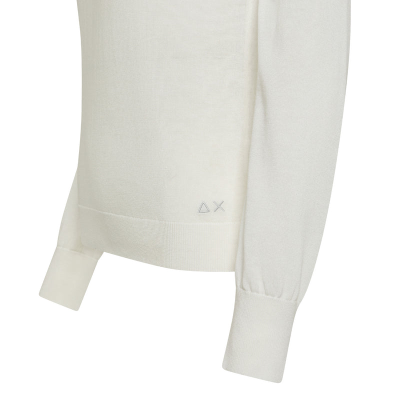 SUN68 DONNA PULLOVER ROUND NECK SOLID L/S BIANCO PANNA