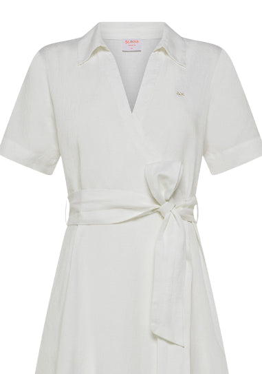 SUN68 VESTITO CHEMISIER LINEN BIANCO
