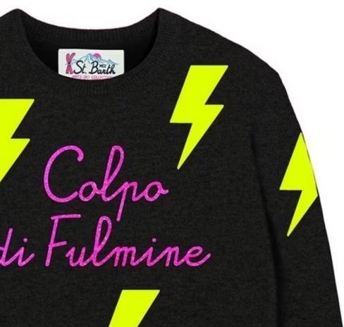 MC2 SAINT BARTH DONNA MAGLIA GIROCOLLO RICAMO COLPO DI FULMINE