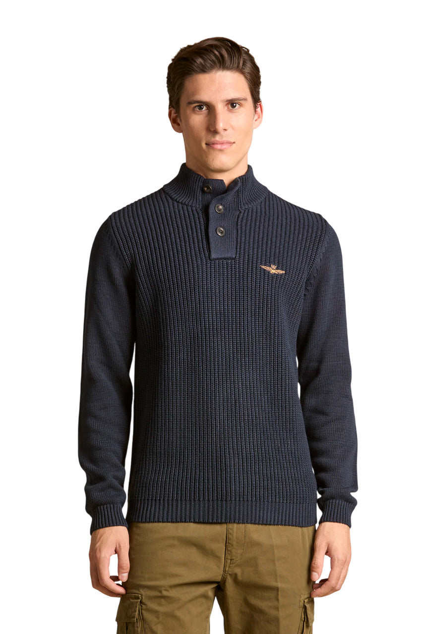 AERONAUTICA MILITARE MAGLIA COLLO ALTO CON BOTTONI IN COTONE DARK BLU