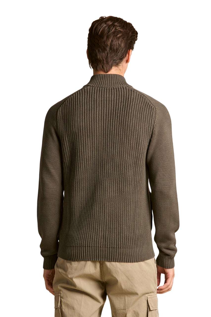 Una maglia spessa e confortevole caratterizzata da una pregiata lavorazione a costa inglese che le conferisce una texture ricca e soffice. Il design, simile a quello di una giacca, è reso funzionale dalla chiusura con zip e arricchito dal taschino sul petto con patta per un dettaglio distintivo.
