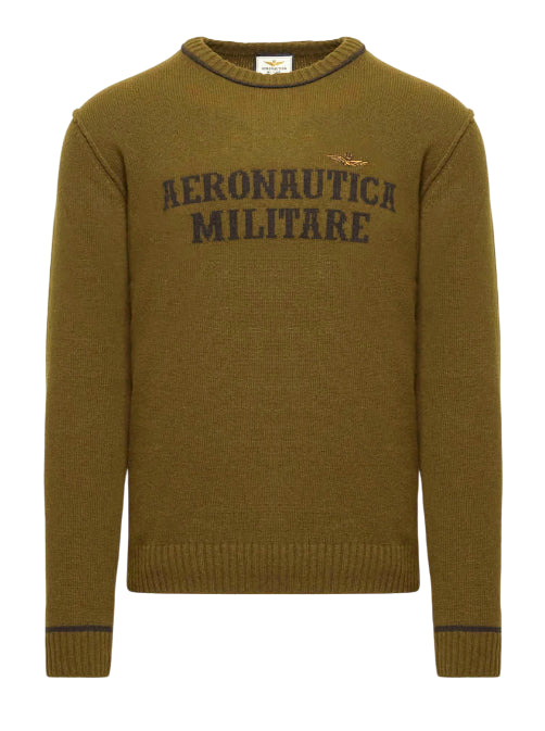 AERONAUTICA MILITARE MAGLIONE IN LANA CON LOGO JACQUARD DARK OLIVE