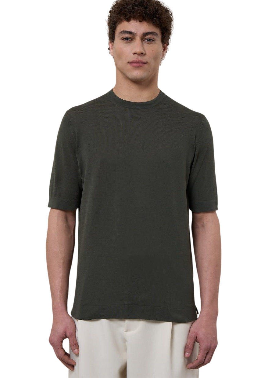 FILIPPO DE LAURENTIIS T-SHIRT COTONE CREPE VERDE MILITARE