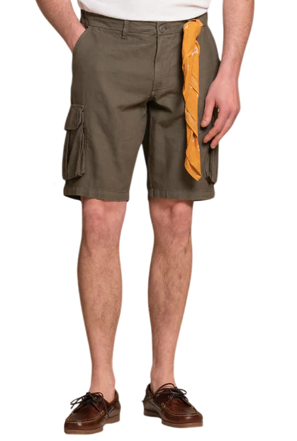 IMPURE BERMUDA COOPER CARGO SHORT MIXED LINEN MILITARY GREEN