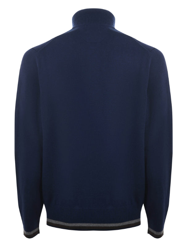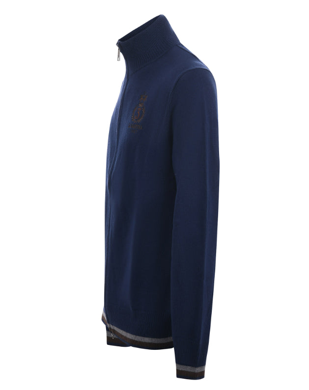 Cardigan La Martina in misto cotone e lana Blu scuro. Collo alto. Polsi e fondo a costine con profili in contrasto. Chiusura con zip. Logo frontale ricamato. Regular fit.