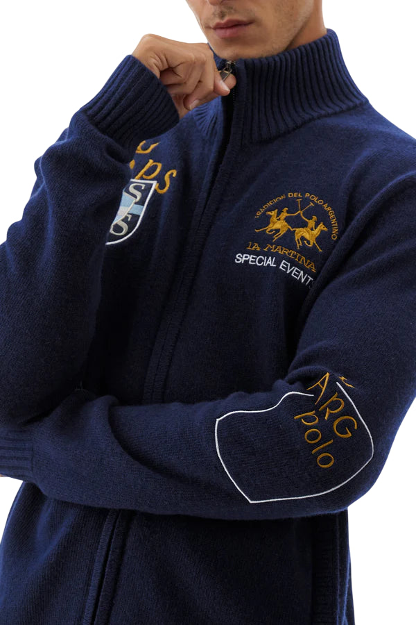LA MARTINA MAGLIONE UOMO FULL ZIP LAMBSWOOL POLO PLAYER BLU