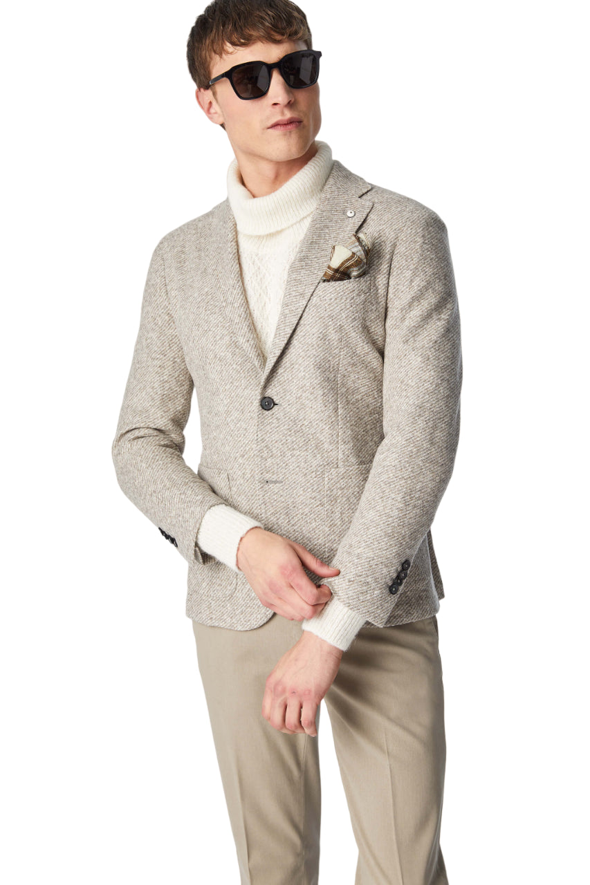 Nuovo prodotto della linea Lbm 1911 per la collezione autunno inverno 23. Una giacca monopetto, interamente sfoderata, con taschino sul petto a barchetta. I raffinati toni del beige chiaro, arricchiti da un'elegante fantasia spinata nel color nocciola sono il dettaglio di stile che fa la differenza. Le comode tasche a toppa caratterizzano questa giacca da uomo e la rendono contemporanea. La vestibilità è regular e il capo veste la taglia indicata. Il modello è alto 189 cm, circonferenza torace 100 cm e indossa una taglia 48. COMPOSIZIONE: 37% COTONE 26% ACRILICO 25% POLIESTERE 12% LANA VERGINE