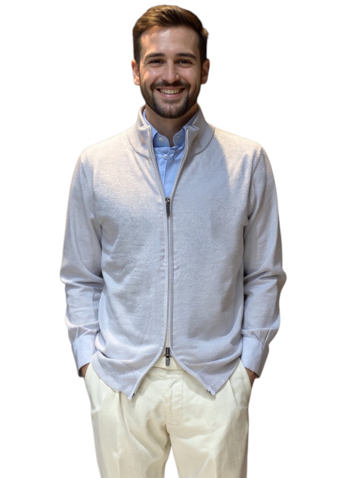 MARK MIDOR CARDIGAN FULL ZIP 100% LANA MERINO EXTRAFINE GRIGIO CHIARO