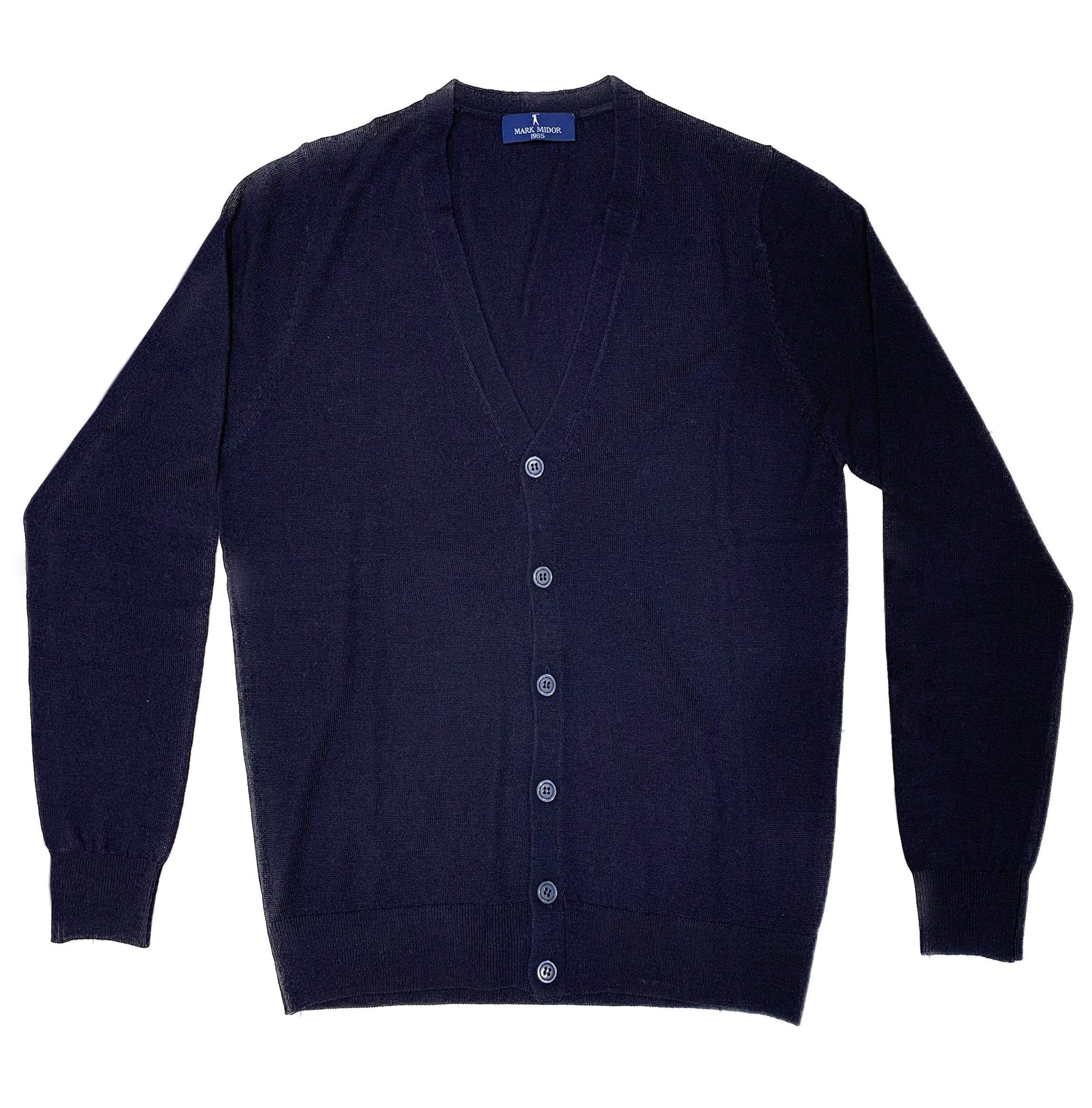 MARK MIDOR CARDIGAN RASATO IN LANA MERINO BLU
