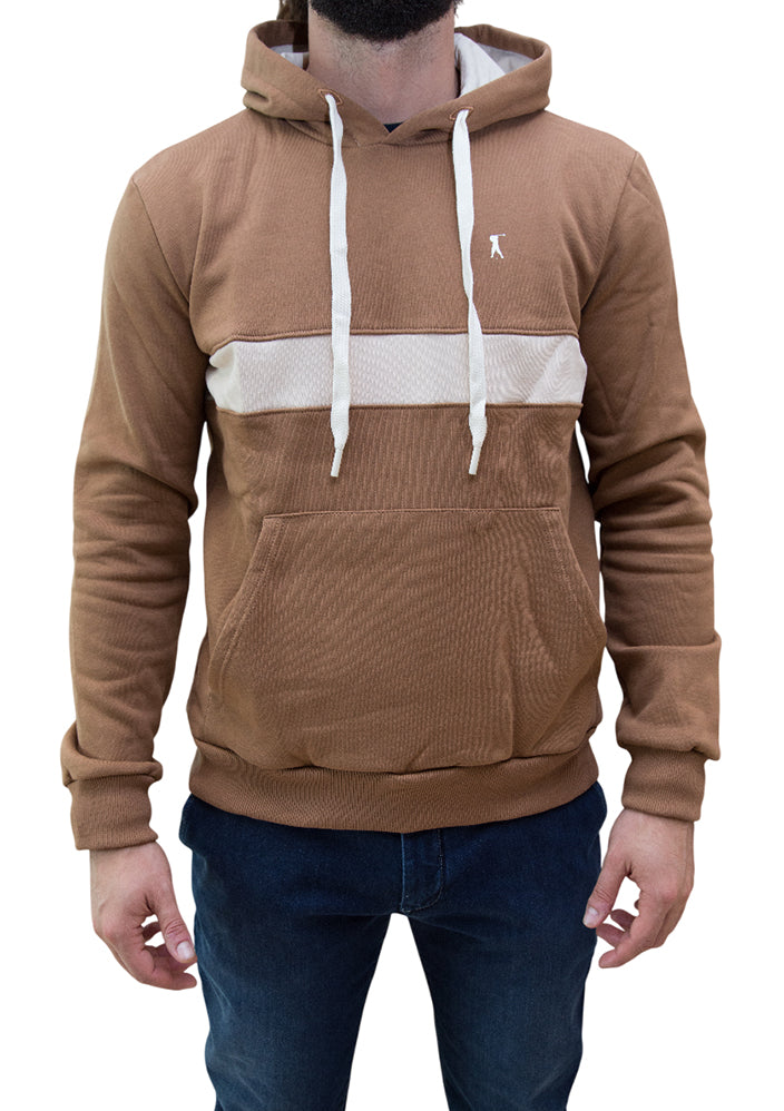 MARK MIDOR FELPA CON CAPPUCCIO IN COTONE TABACCO AVORIO