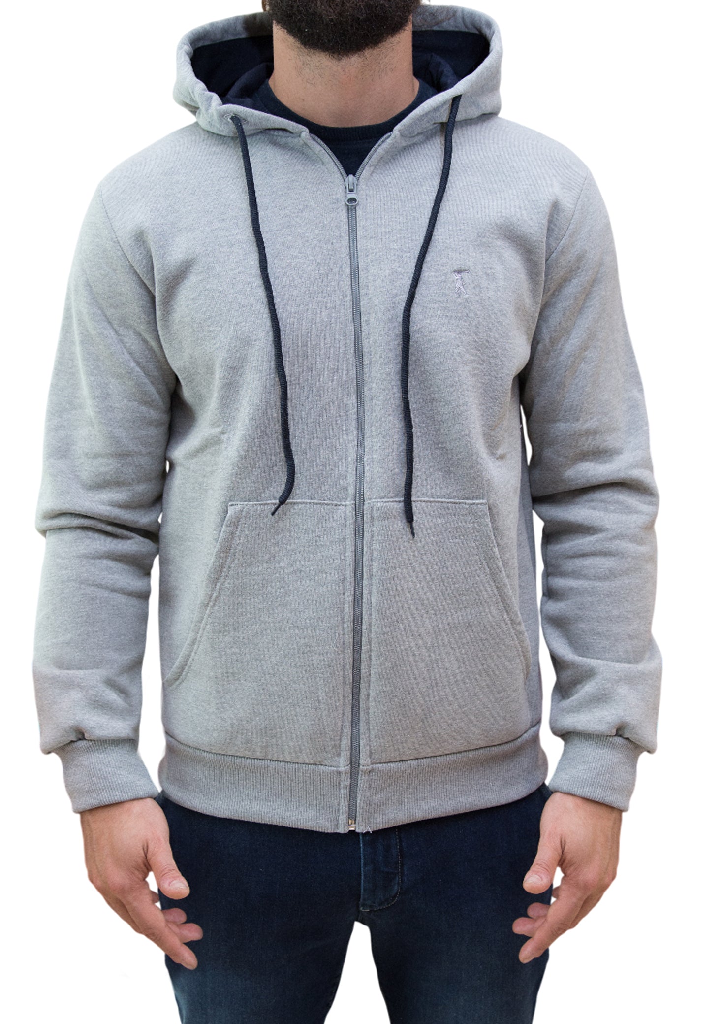 MARK MIDOR FELPA COTONE FULL ZIP E CAPPUCCIO COLORE GRIGIO MELANGE