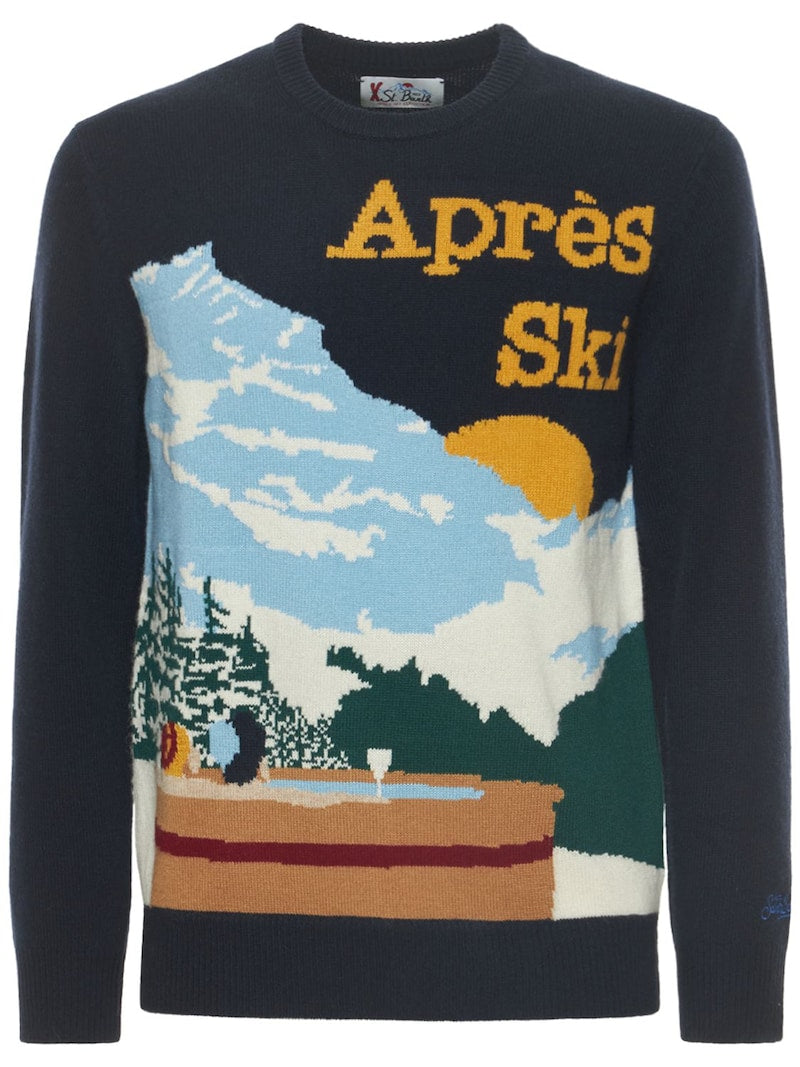Nuovo prodotto per la collezione autunno inverno 22-23 di MC2 Saint Barth. Un caldo maglione in misto lana utilissimo nelle fredde giornate invernali da abbinare ad un look casual senza mai rinunciare al proprio stile ricercato. Sul davanti il ricamo con la scritta: APRÈS SKI a contrasto colore, girocollo, orlo e polsi a costine. Ricamo “Saint Barth” sulla manica sinistra. La vestibilità è regolare.