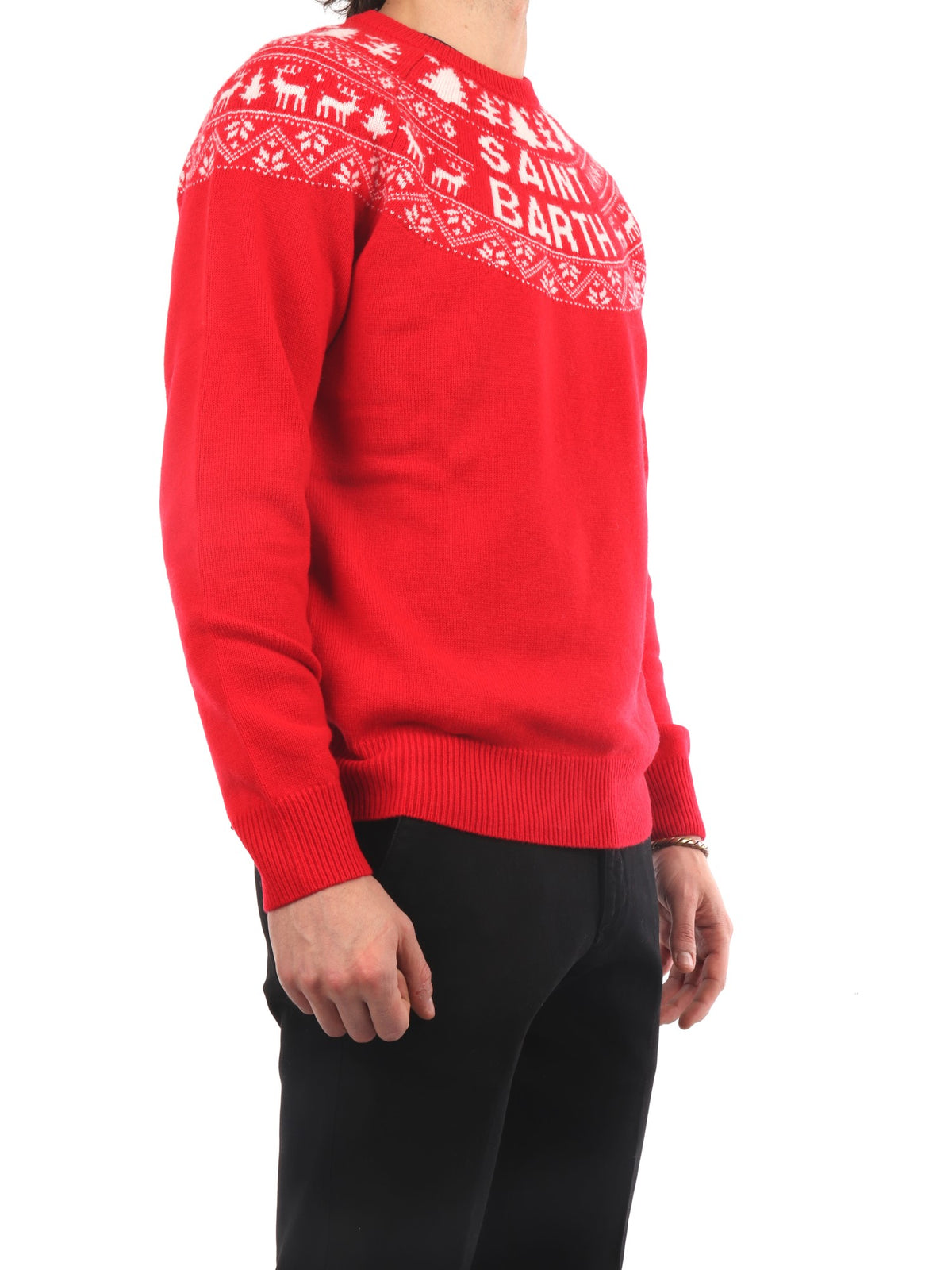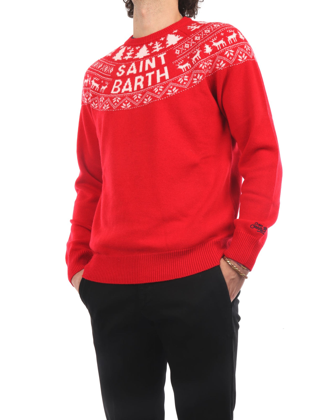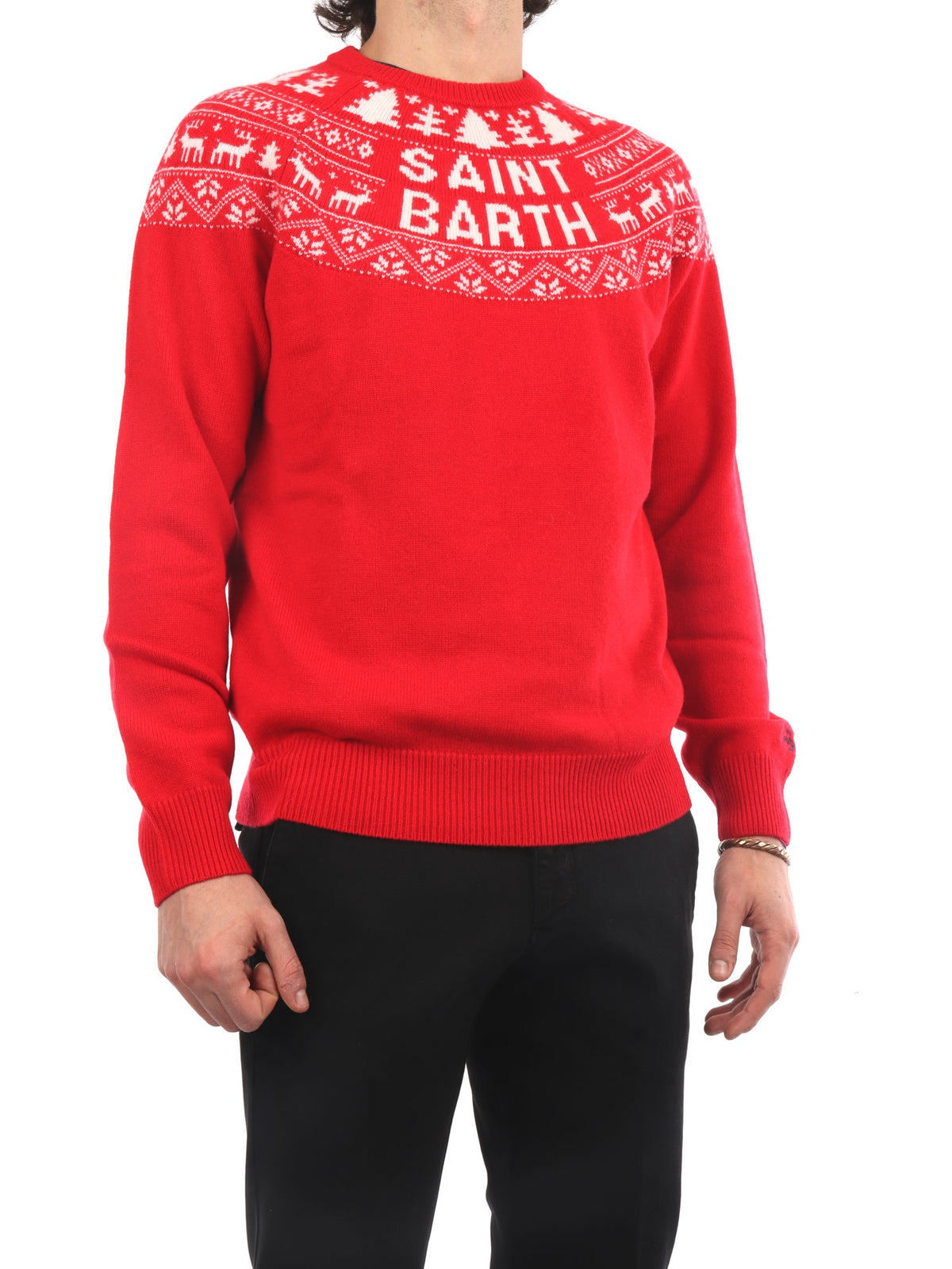 MC2 SAINT BARTH MAGLIONE ROSSO DA UOMO CON RICAMI NATALIZI