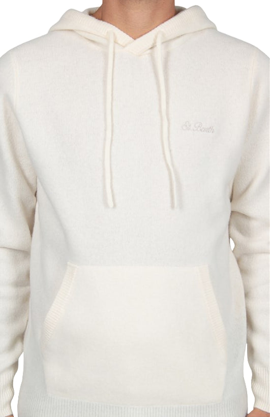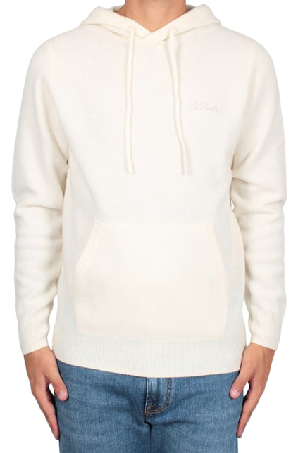 MC2 SAINT BARTH UOMO FELPA IN LANA CON CAPPUCCIO MAHONY BIANCO