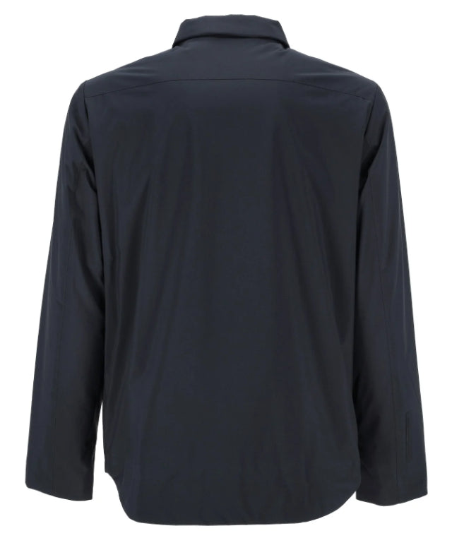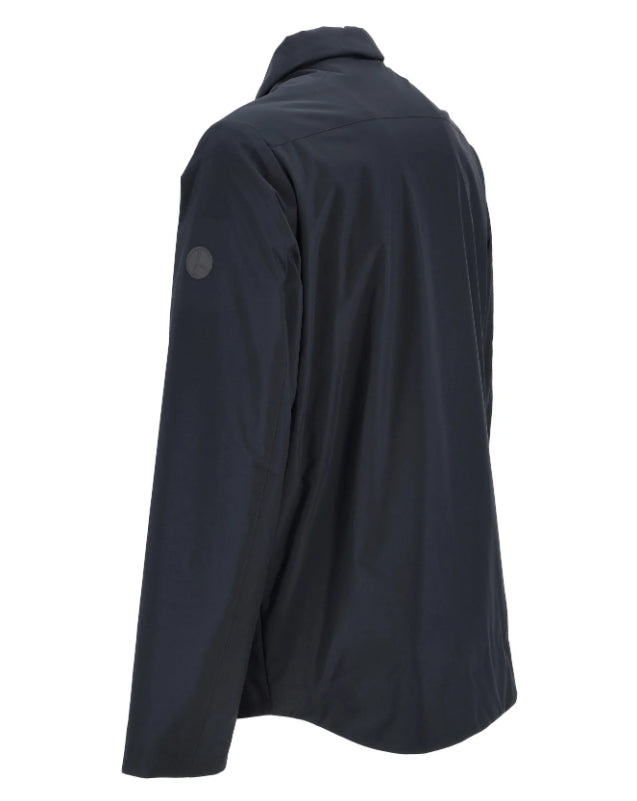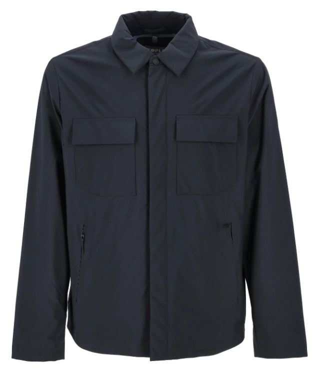 Nuovo prodotto della collezione autunno inverno 25/26 firmata People. Una pratica giacca/giubbino da uomo con colletto che presenta due tasche a filo con chiusura zip sui fianchi e tasconi sul petto con pattina. Colore blu navy, tessuto tecnico made in People of Shibuya.