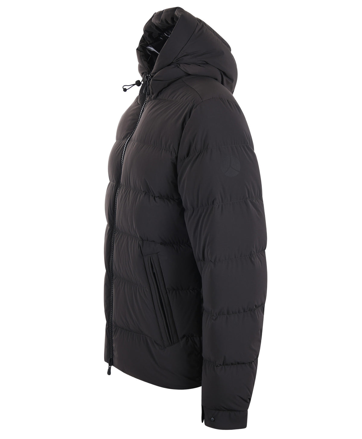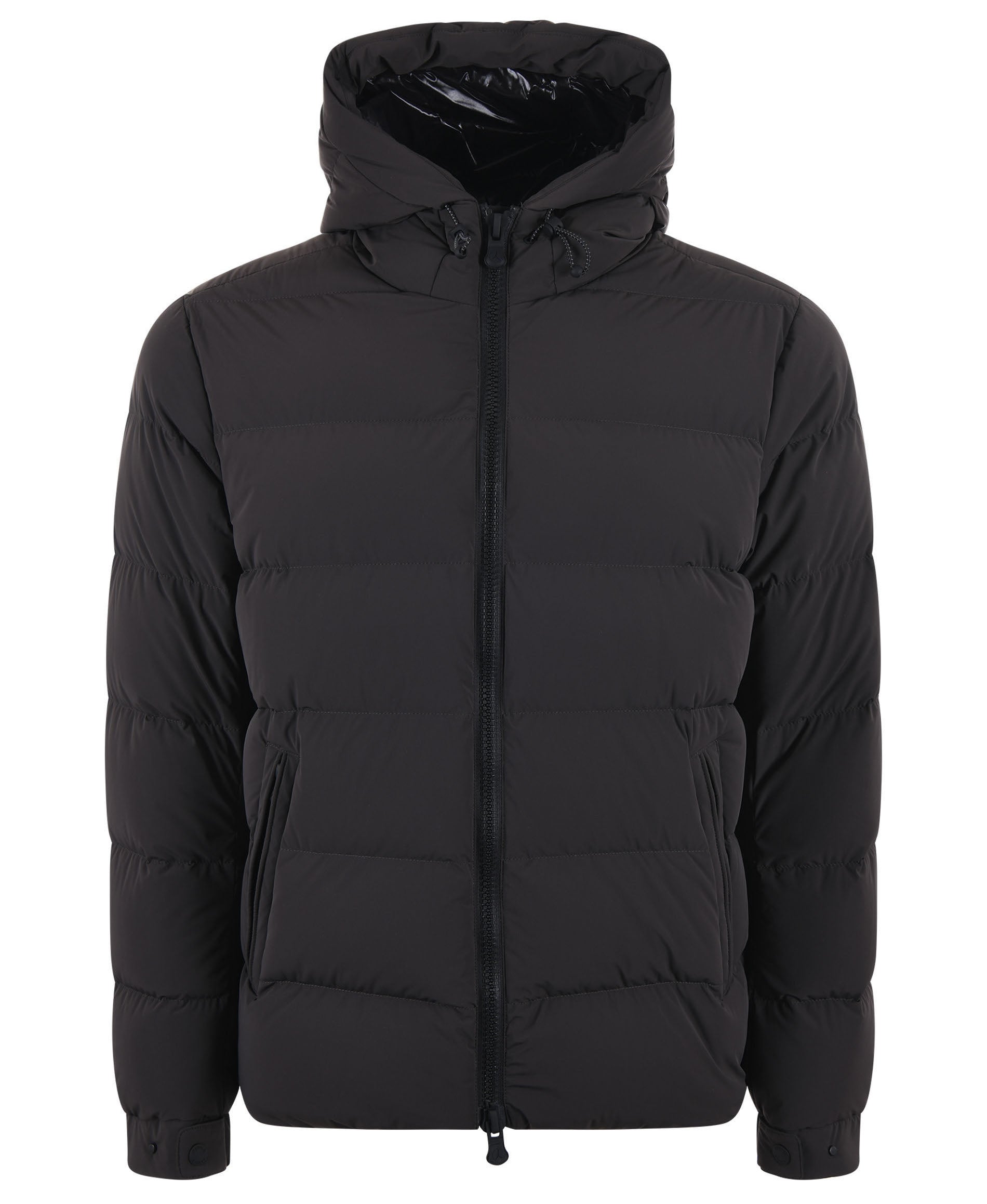 Piumino in nylon tecnico soft touch elasticizzato interno in nylon effetto lakké, imbottitura in piumino 90/10.