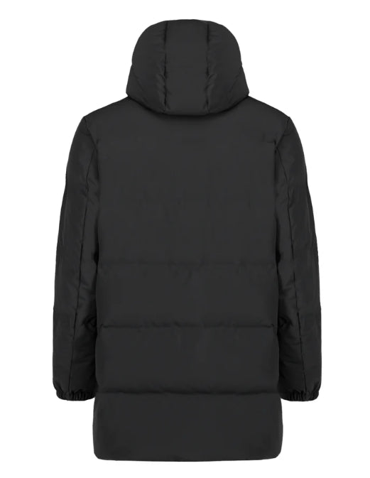 Piumino lungo trapuntato in nylon stretch two layers con membrana, interno con piumino 90/10.