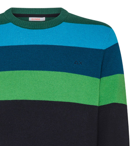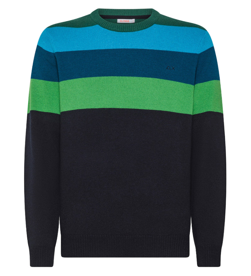 SUN68 MAGLIONE ROUND STRIPES FANCY WARM NAVY BLUE