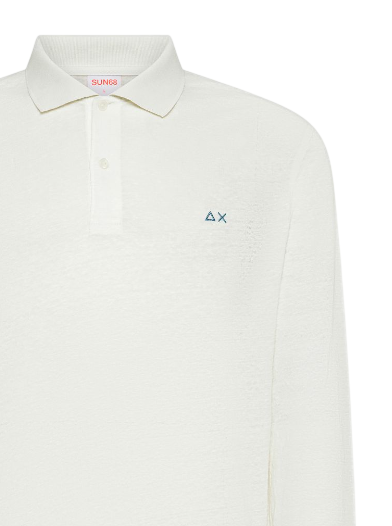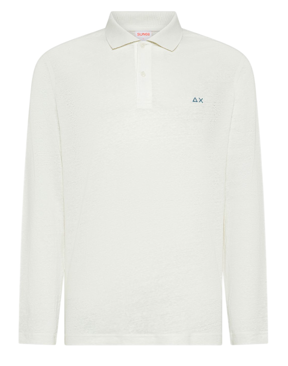 SUN68 UOMO POLO A MANICHE LUNGHE IN LINO BIANCO PANNA