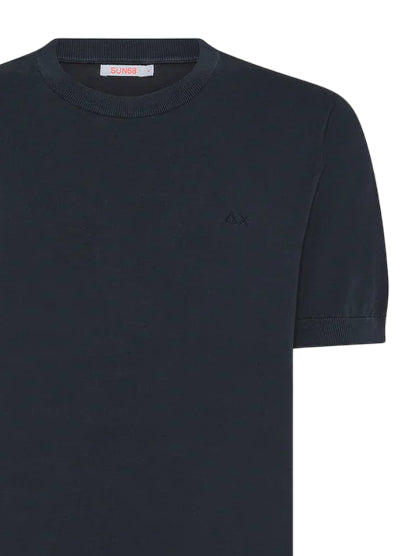 SUN68 UOMO T-SHIRT SWEATER COTTON CREPE BLU