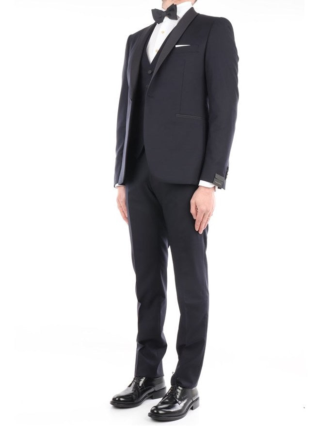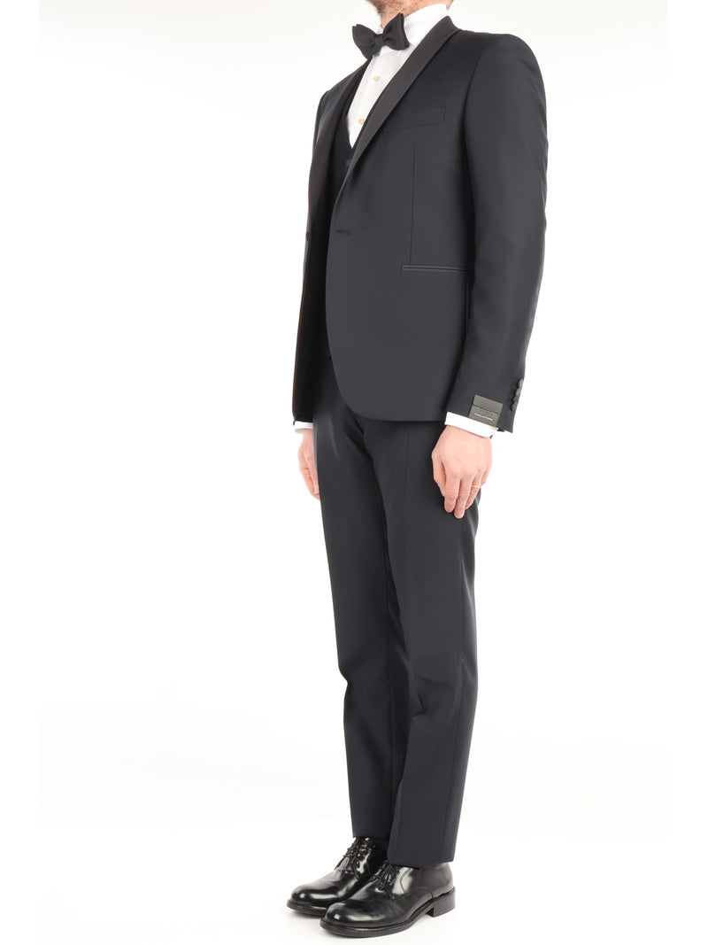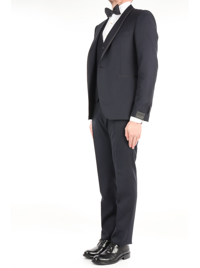 TAGLIATORE ABITO SMOKING DA CERIMONIA MONOPETTO IN LANA CON GILET COLORE MARINO
