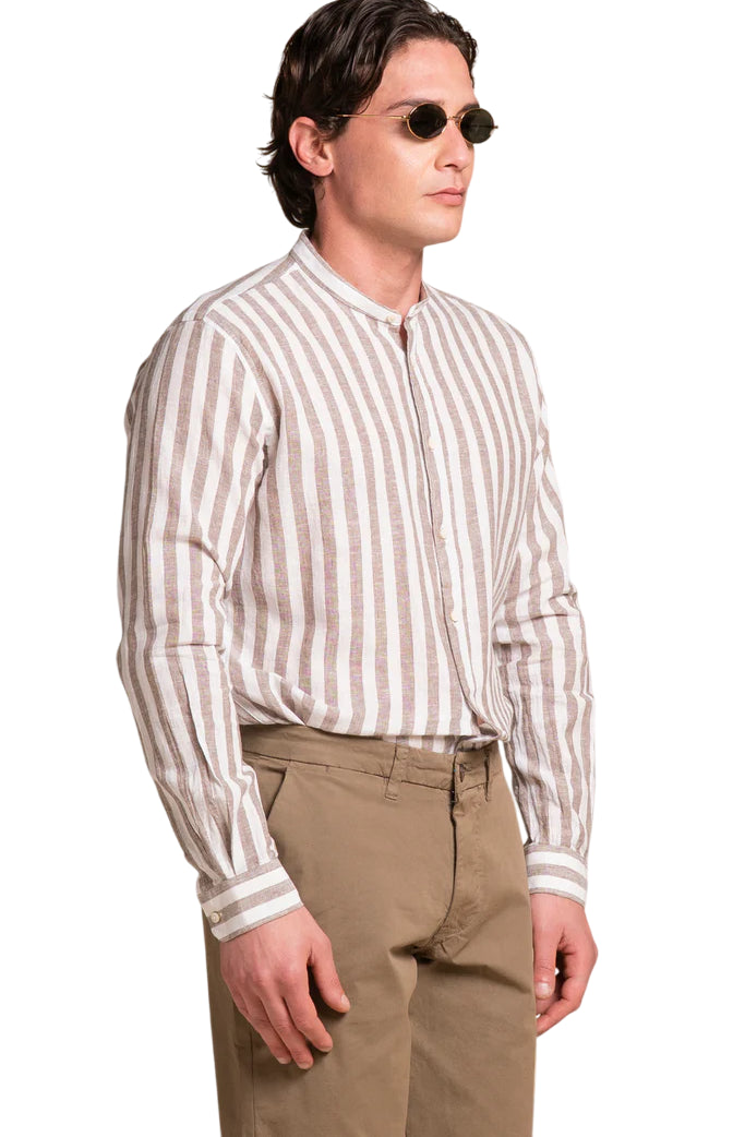 IMPURE CAMICIA LARS COREANA IN MIXED LINEN STRIPE BROWN