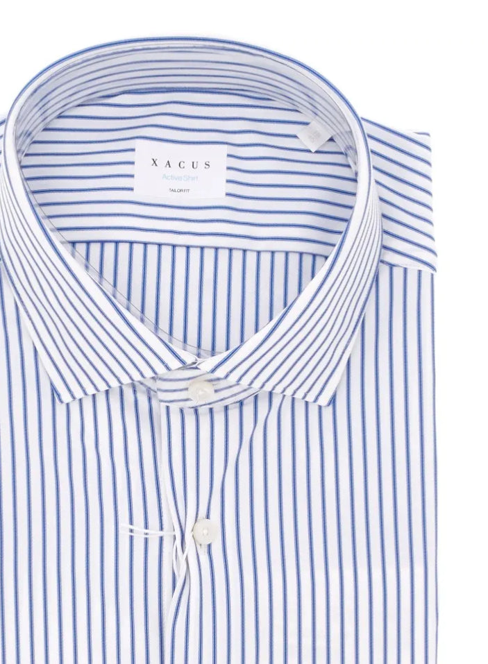 XACUS CAMICIA COLLO FRANCESE TAILOR FIT ACTIVE RIGHE BLU