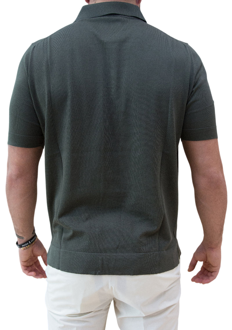 FILIPPO DE LAURENTIIS POLO IN CREPES DI COTONE VERDE MILITARE