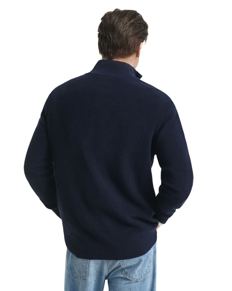 GANT MAGLIA CON ZIP CORTA IN COTONE E LANA MERINO A COSTE EVENING BLUE