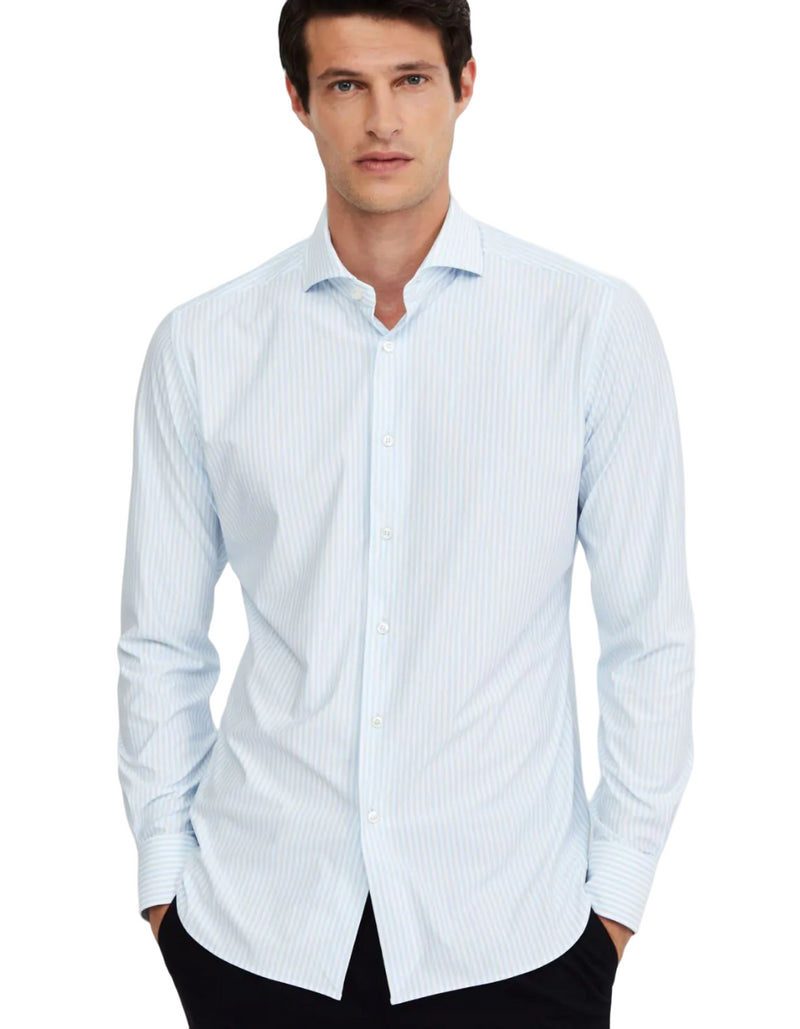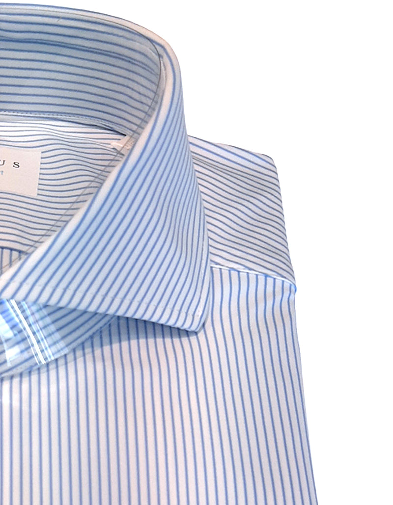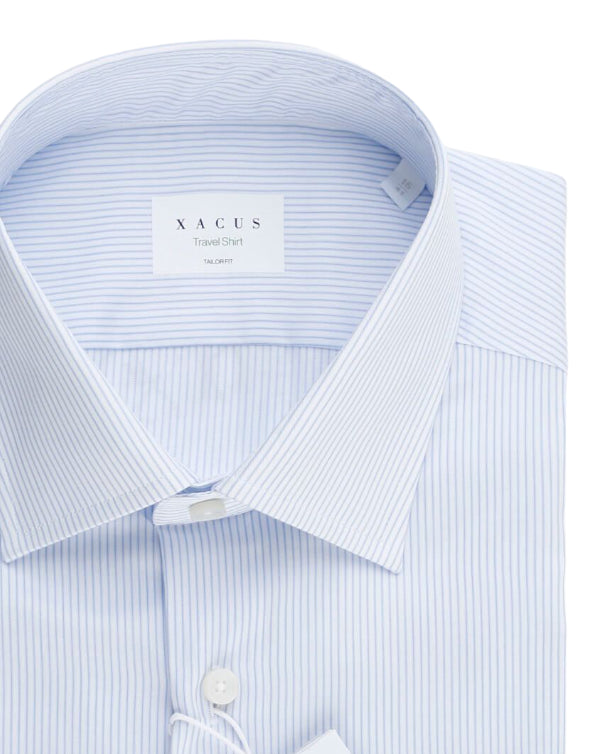 XACUS CAMICIA TRAVEL SHIRT TAILOR NO STIRO RIGHE BIANCO CELESTE