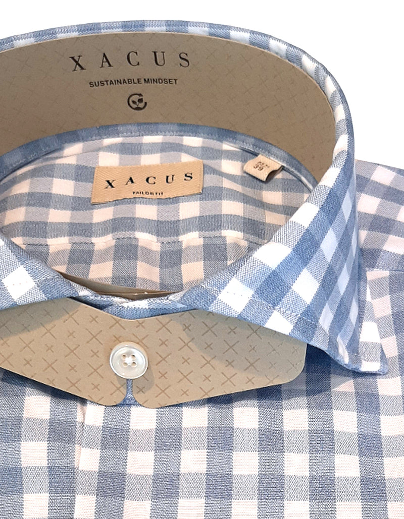 XACUS CAMICIA TAILOR WASHED A QUADRI BIANCO CELESTE