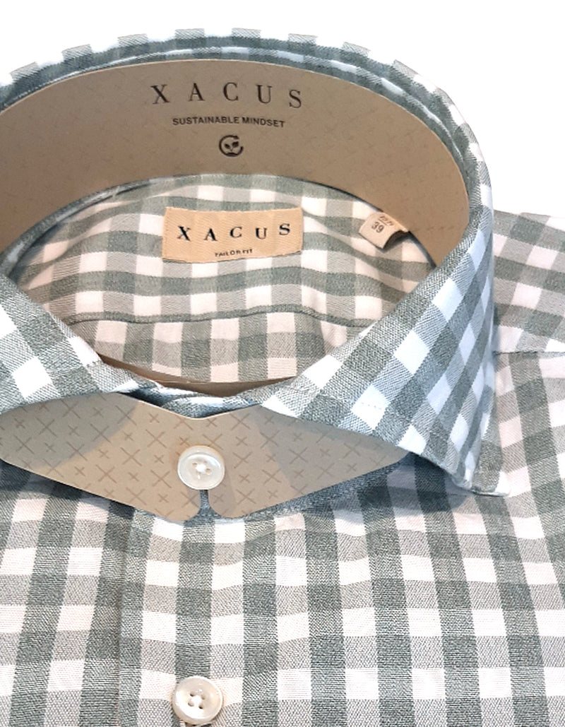 XACUS CAMICIA TAILOR WASHED A QUADRI BIANCO VERDE
