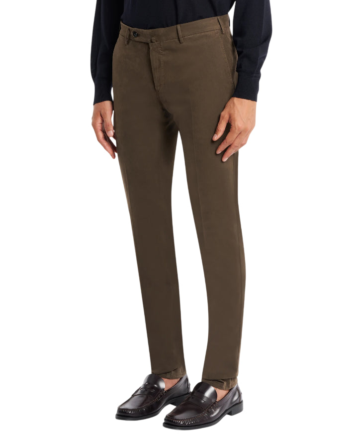 PT01 PANTALONI SUPERSLIM IN GABARDINA STRETCH COLORE CACAO