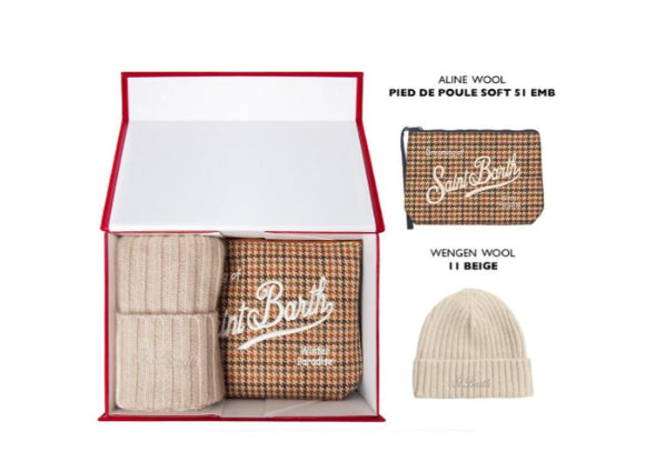 MC2 SAINT BARTH CHRISTMAS BOX CAPPELLO E POCHETTE BEIGE TARTAN