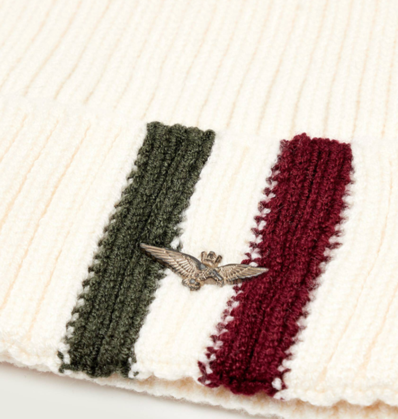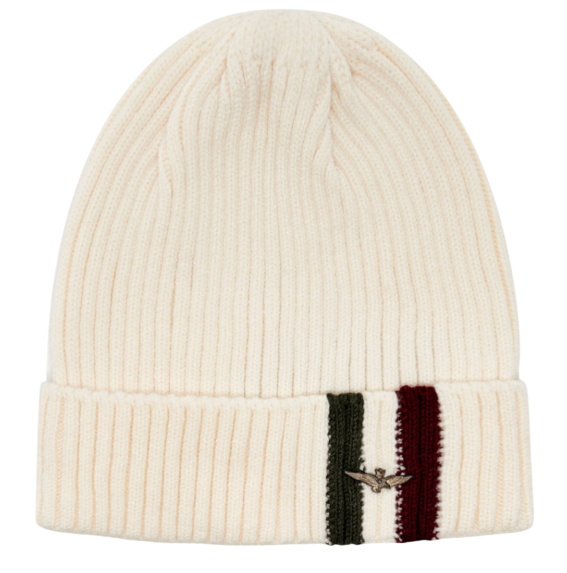 AERONAUTICA MILITARE BERRETTO A MAGLIA LARGA PATCH AQUILA CREAM WHITE