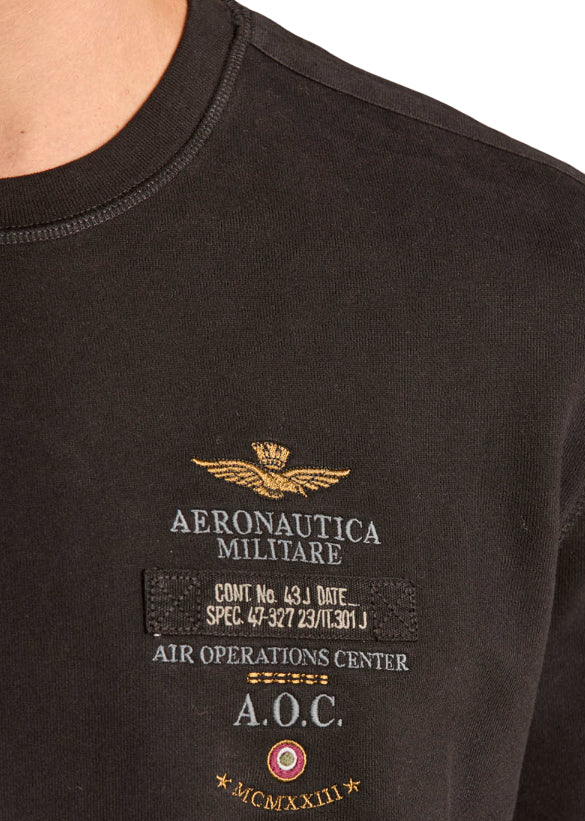 AERONAUTICA MILITARE FELPA GIROCOLLO COTONE EFFETTO VINTAGE NERO