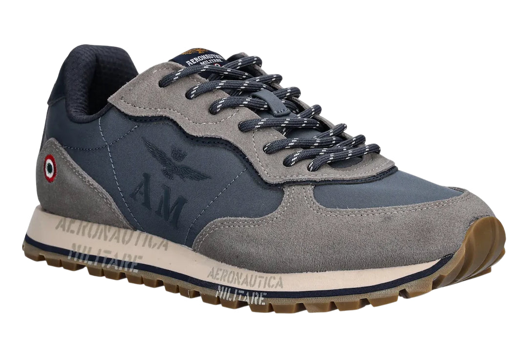 AERONAUTICA MILITARE SNEAKERS IN TESSUTO E PELLE SCAMOSCIATA AVIO GRIGIO