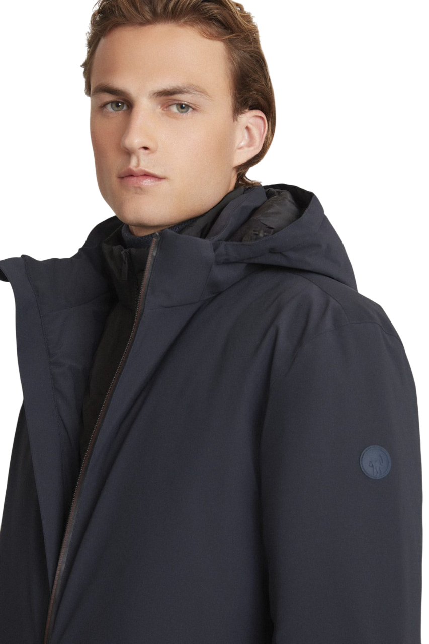 Giacca imbottita nera in tessuto softshell 2 layers e imbottita in vera piuma 80/20.