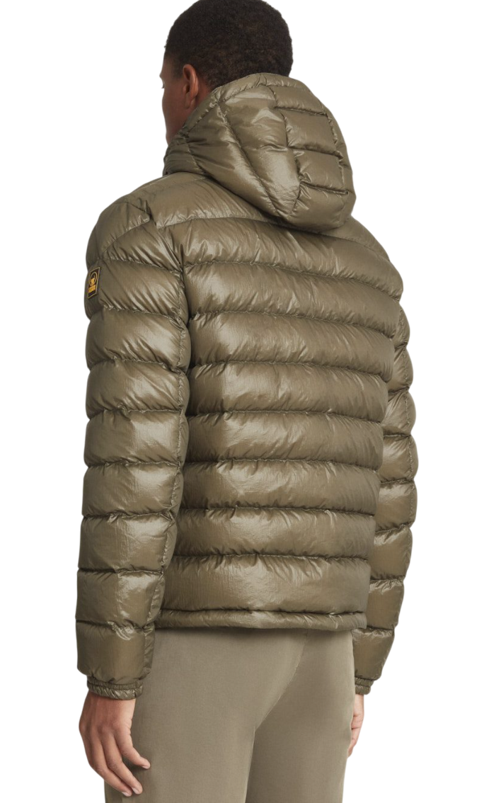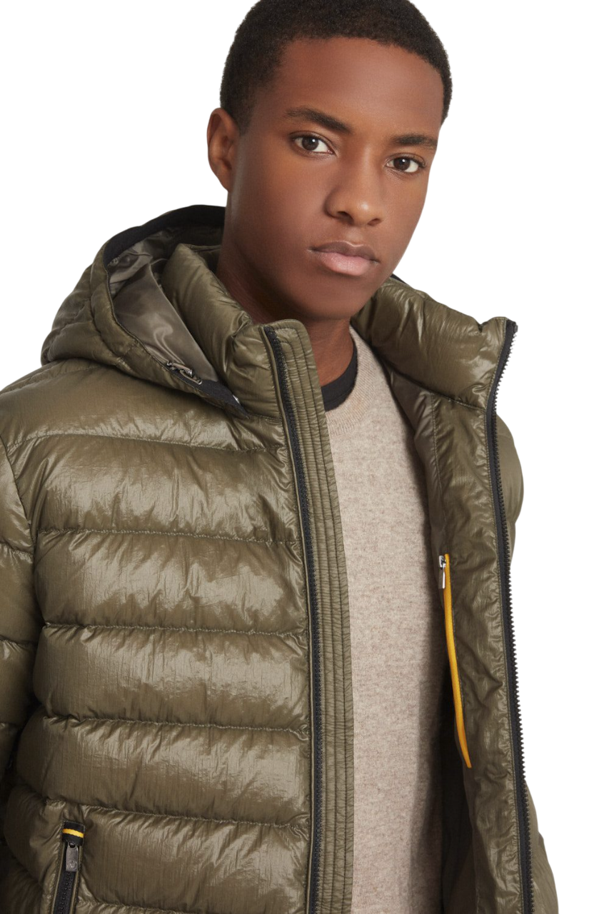 Piumino corto verde 200 grammi con imbottitura in vera piuma 800 fill power 90/10, ideale per attività sia urban che outdoor.