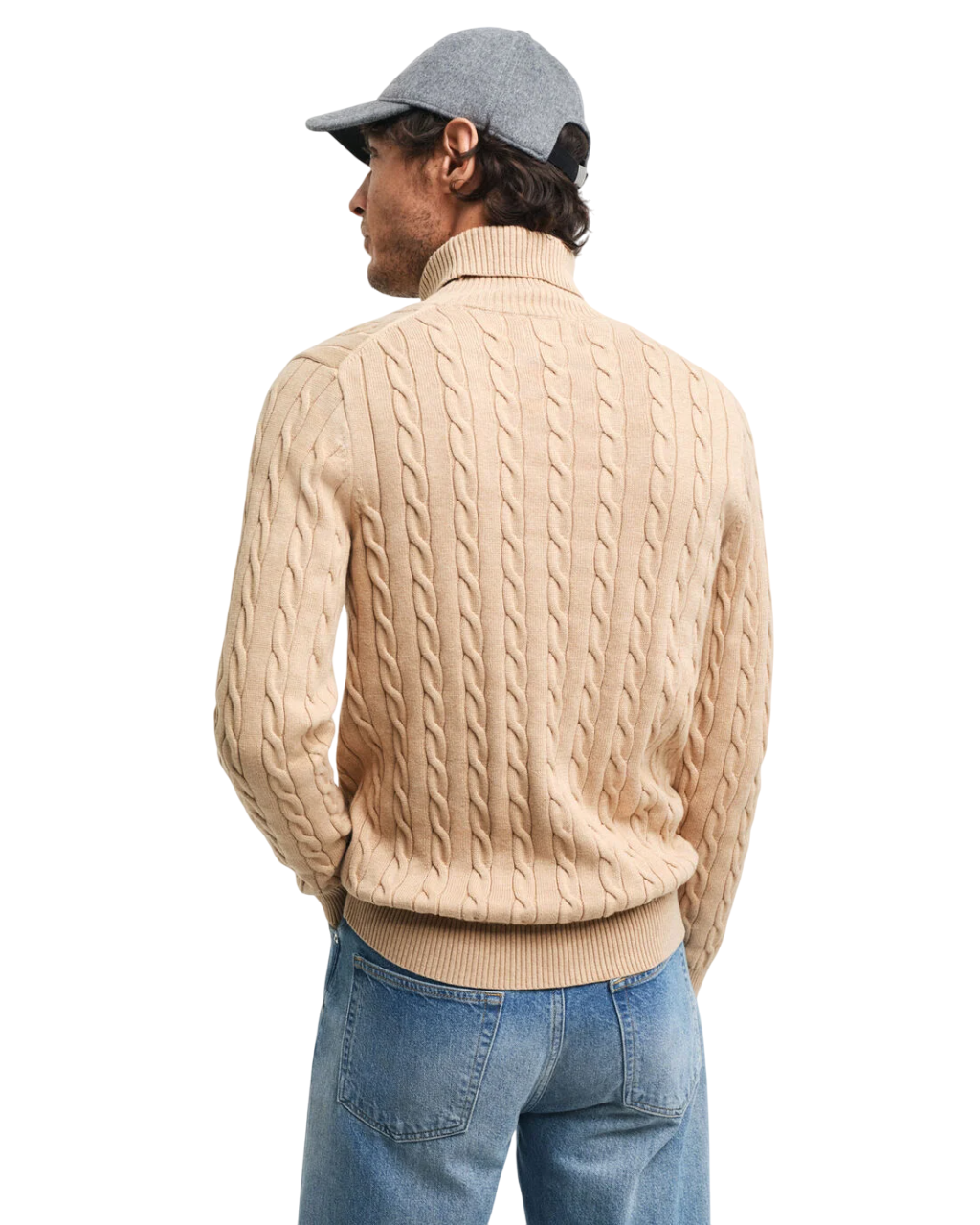 GANT MAGLIA A COLLO ALTO IN COTONE A TRECCE KHAKI MELANGE