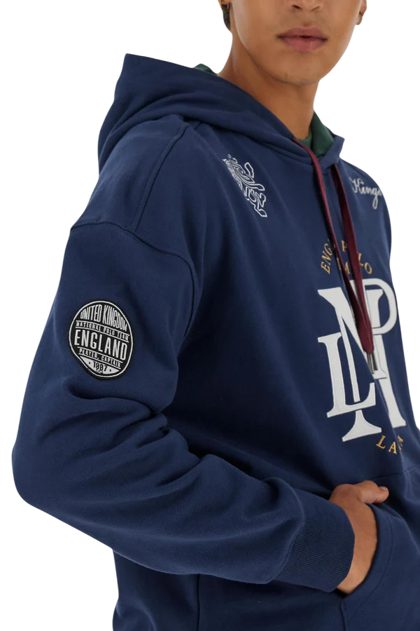 LA MARTINA FELPA UOMO CON CAPPUCCIO IN FRENCH TERRY LM ENGLAND BLU