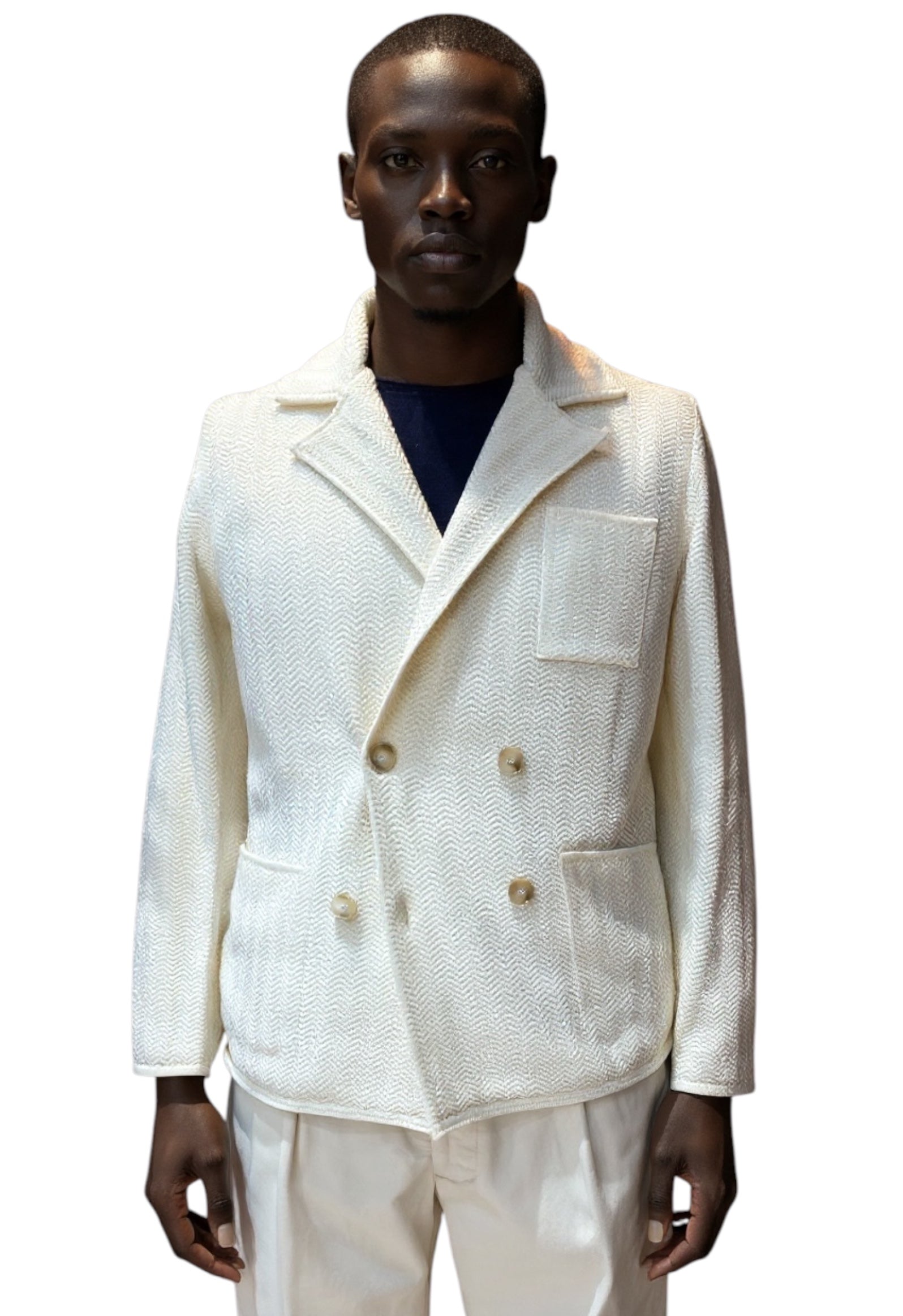 MARK MIDOR GIACCA MAGLIA DOPPIOPETTO SPIGATA IN LANA MERINO PANNA