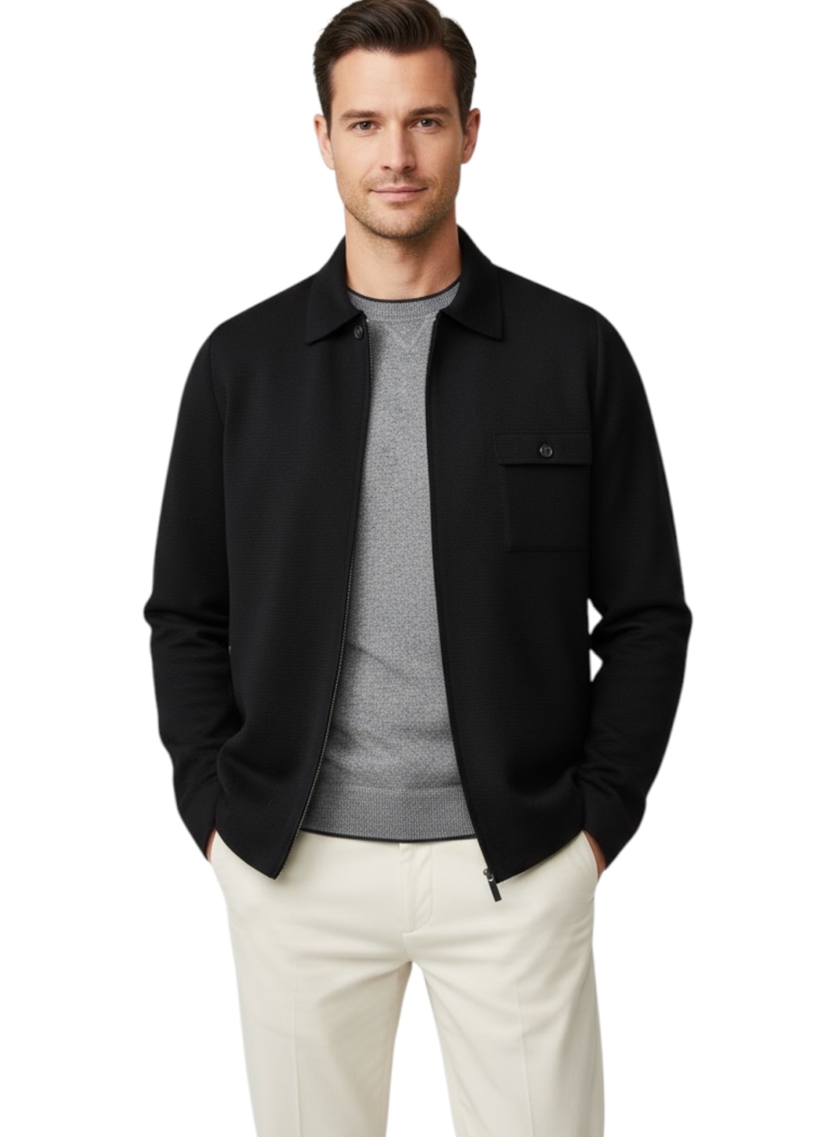 MARK MIDOR GIACCA MAGLIA FULL ZIP IN LANA CON TASCHINO NERO