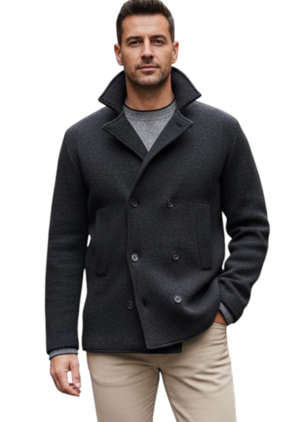 MARK MIDOR GIACCA MAGLIA MODELLO CABAN ANTRACITE